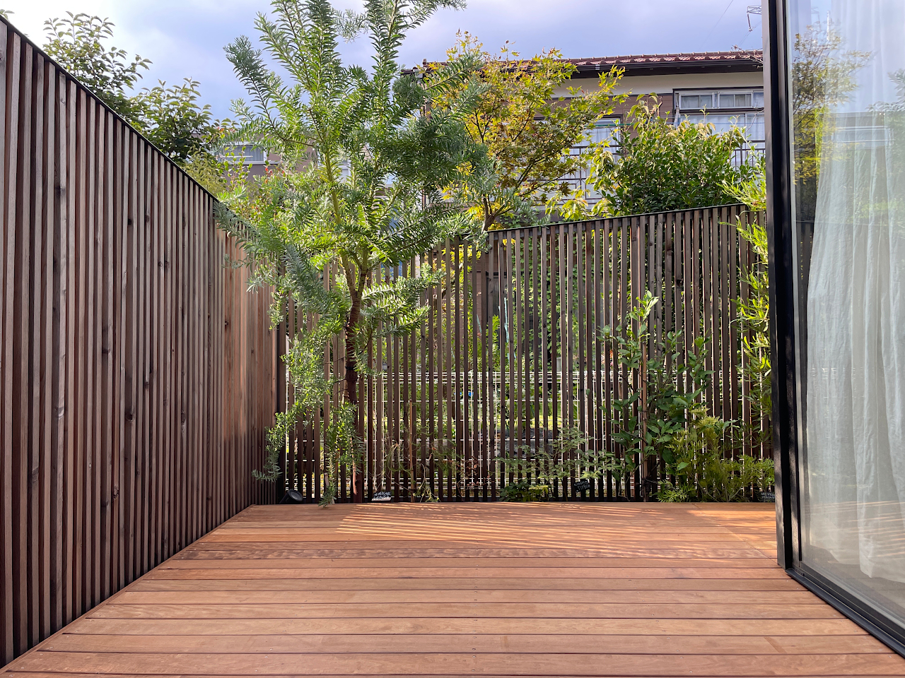 天然木ならではの温もりと、ハードウッドの持つ重厚感が、庭全体のグレードを高めています