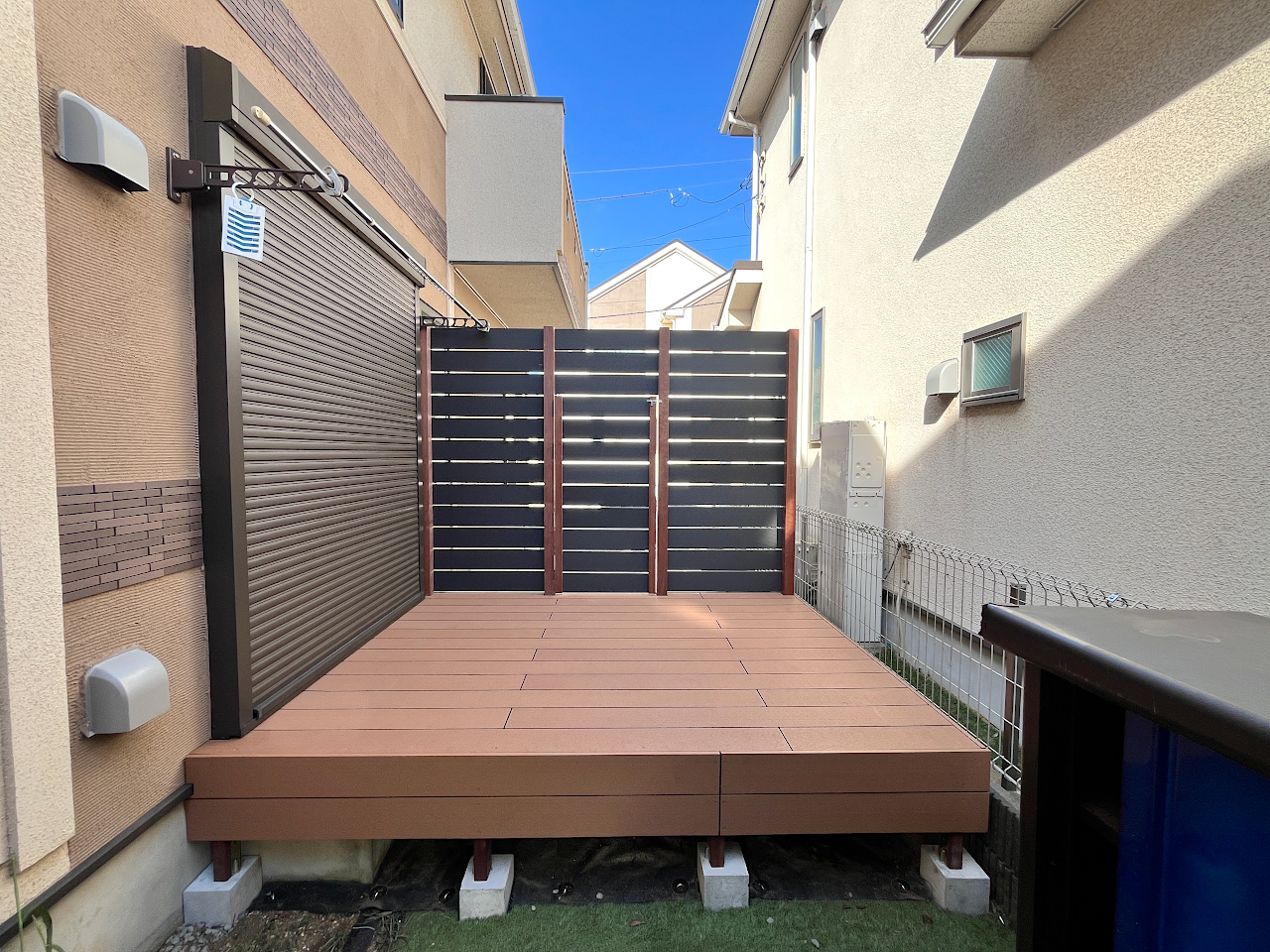 人工木は反り曲がりがひどくなると交換のタイミングとなります。