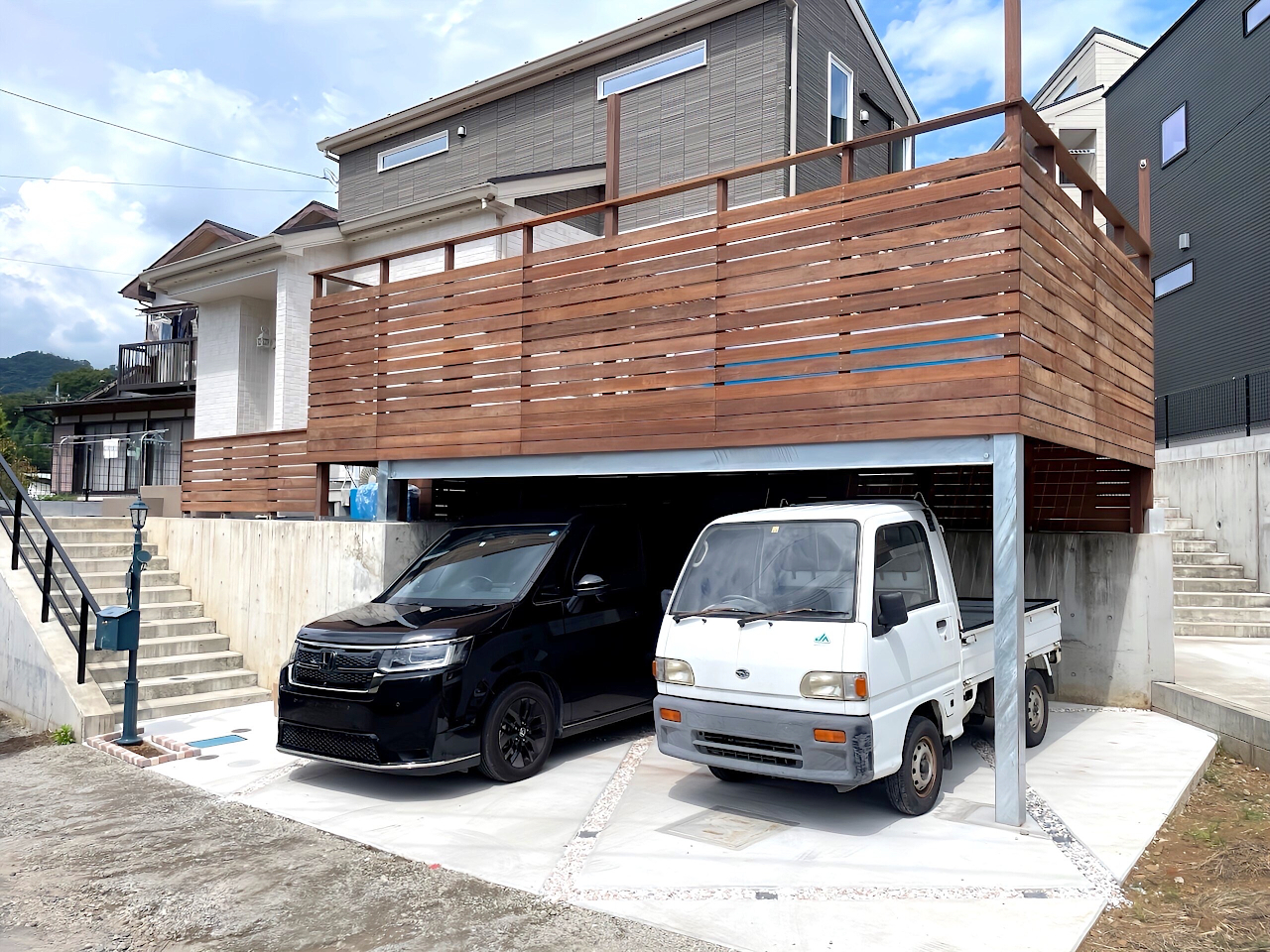 あっというまに、車庫上スカイデッキの完成です。 外観デザインはお客様とお打ち合わせを重ねてご納得のいく仕上がりに。