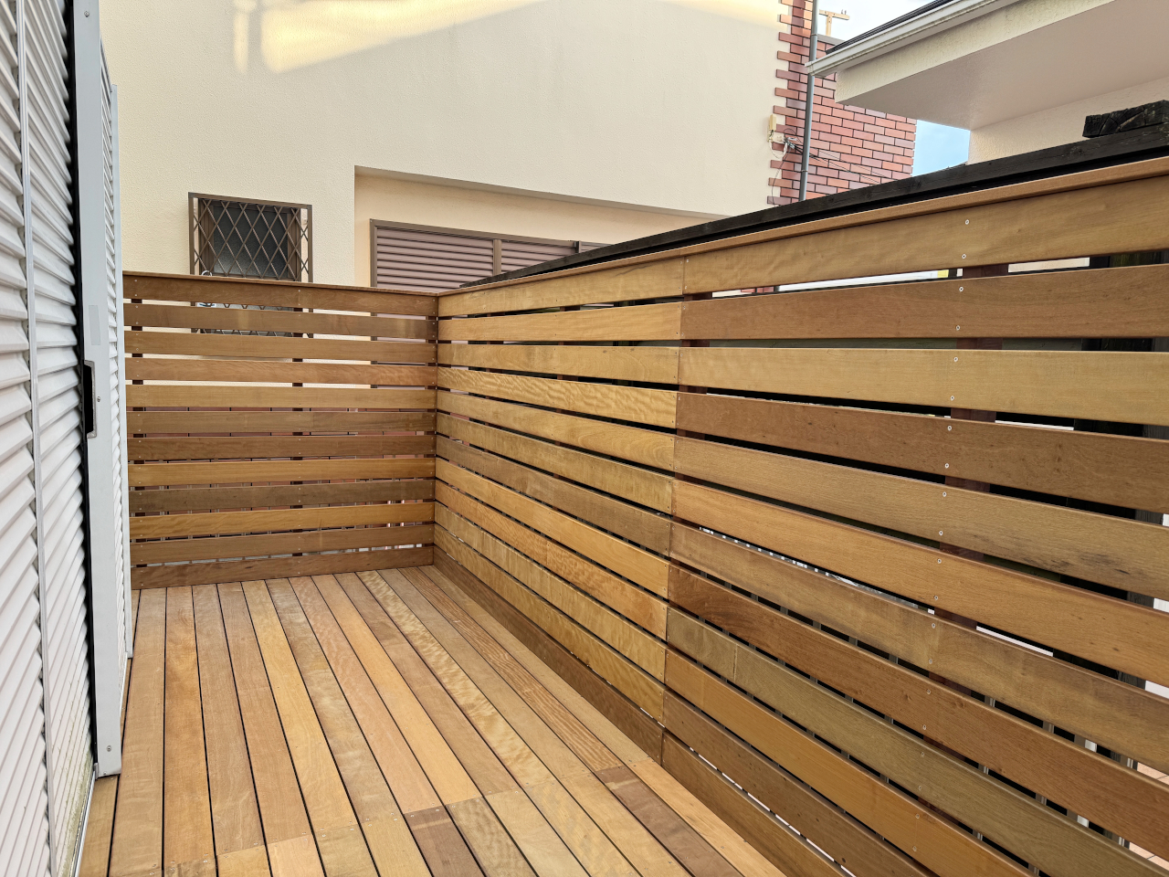 スペースはあるけれど、なかなか活用できていなかった場所に、目隠しフェンス付きのウッドデッキを設置させていただきました。