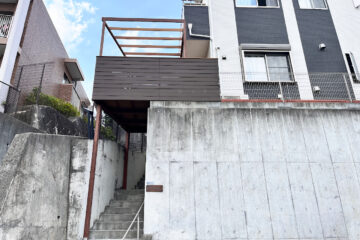 駐車場にのぼる手すりと階段もあくまでもシンプルで機能的に。